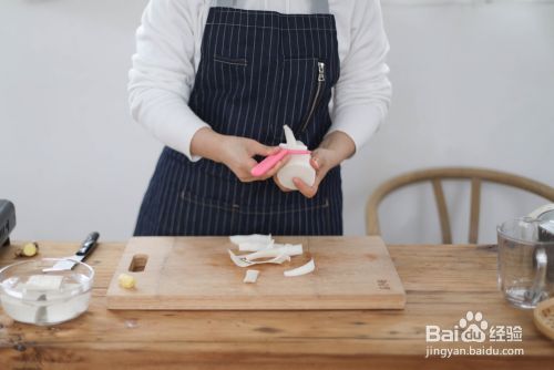 姜切成片,蒜切成片,锅里放些植物油,等7岁,姜放入蒜片,炒香,再放入白萝卜