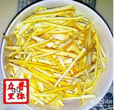 把柚子皮切成细条,要切得细一点