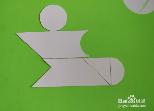 放上左右挨着的三角形、半圆形,上端一齐,如图。