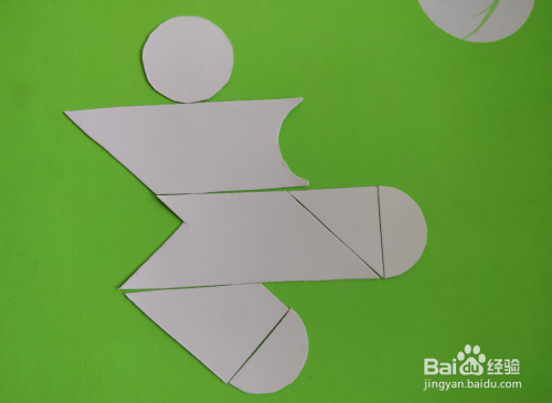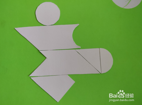 在梯形的右下,放上半圆形挨着,下端一齐,如图。这样练习跆拳道的人就拼好了。
