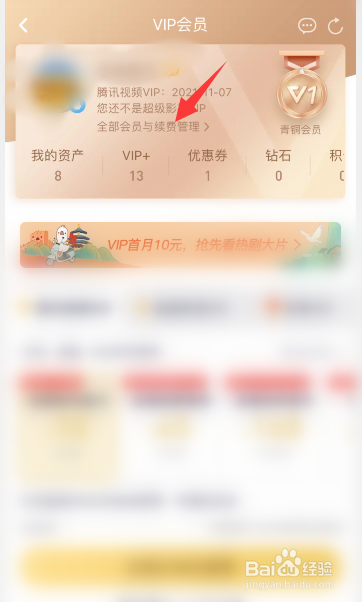 点击头像右侧的“全部会员与续费管理”