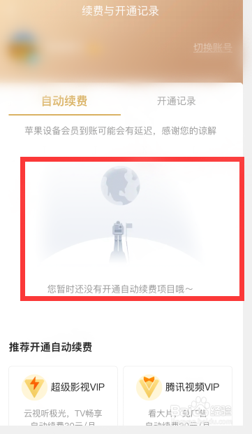腾讯视频打开个人中心,点击视频VIP,然后点击全部会员和续费管理,在弹出的窗口中,点击打开续费管理开通记录,取消自动续费即可。