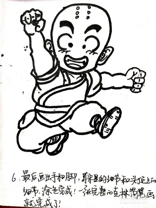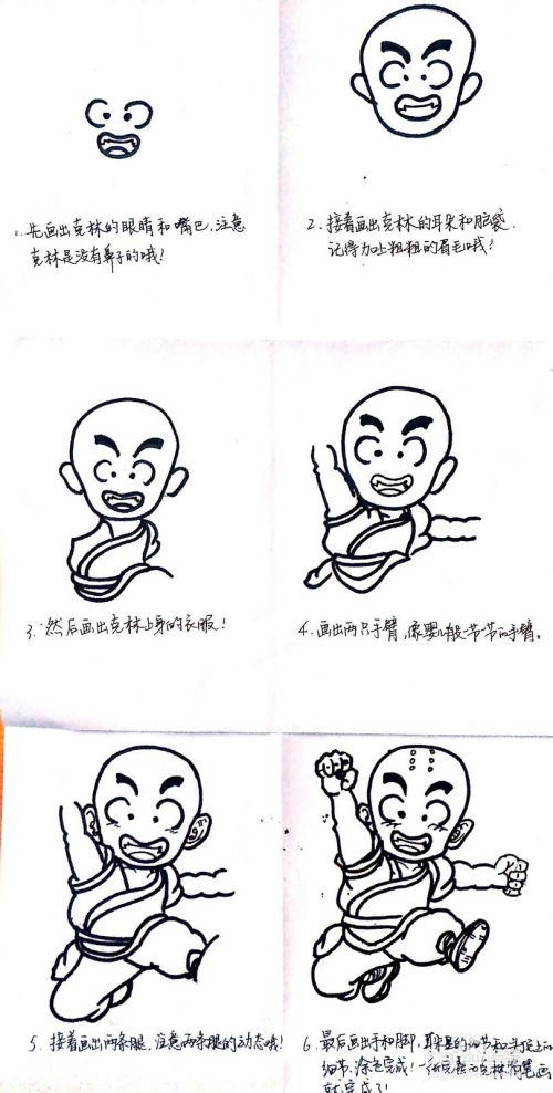 大家还记得《七龙珠》动漫中这个人吗?他有着这样的特点:一颗光头,没有鼻子,身材矮小。没错,他就是克林。今天,我来把他用简笔画的形式呈现给大家吧。