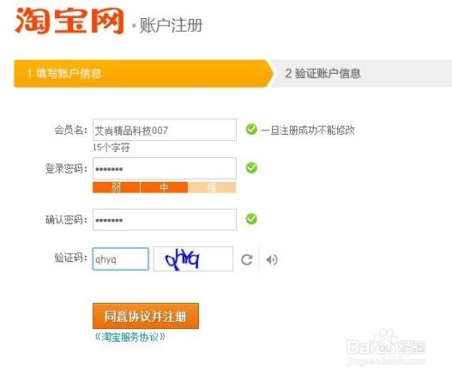 填写注册信息(会员名、密码和验证码),点击同意协议并注册
