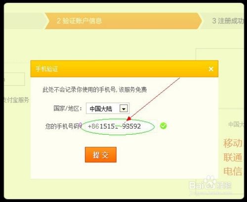 接下来是最关键才一步。单击确定之后出来手机验证方框,这里输入你的已经注册过的手机号就可以。单击提交,输入淘宝系统发回的手机验证码,单击确定。