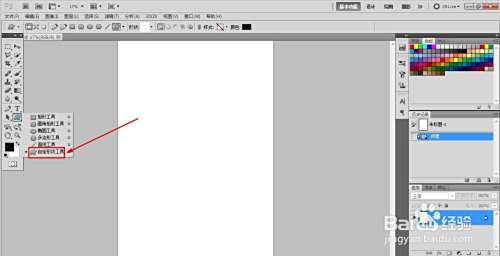 在PS软件中,可以新建一张A4白色纸张,通过界面自定形状工具,选择形状中的前进符号,在A4白纸中画出一个前进符号来实现。