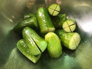 粗盐腌15分钟后洗净(我放的盐比较多,因为我比较爱吃咸一点的)