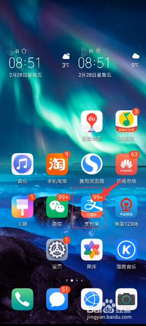 打开手机,点击桌面上的支付宝应用图标。