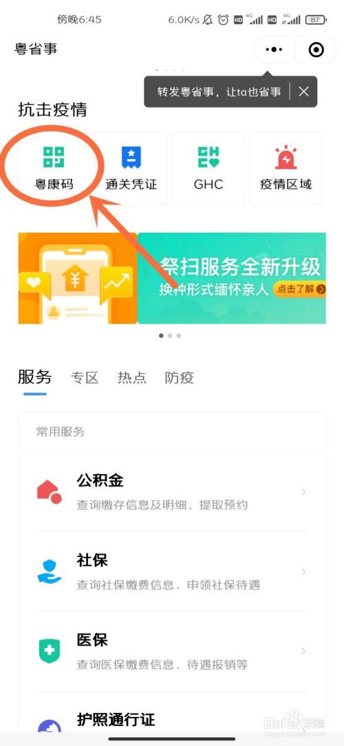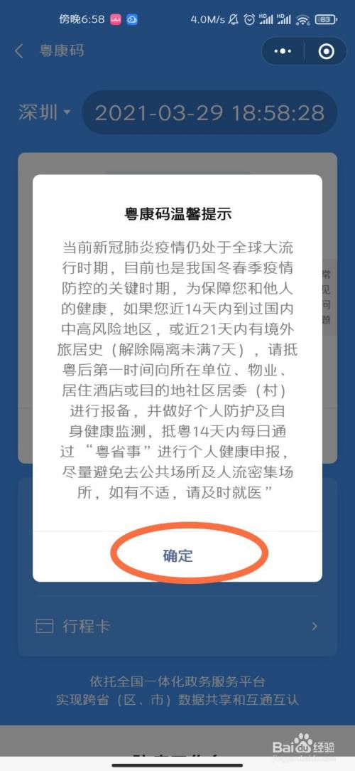 进入后会跳出“粤康码温馨提示”,点击确定即可;