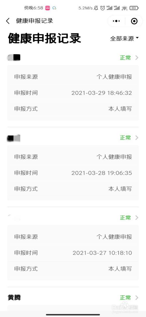 此时会进入健康申报记录页面,既可以查看个人健康申报的时间。