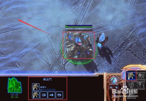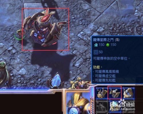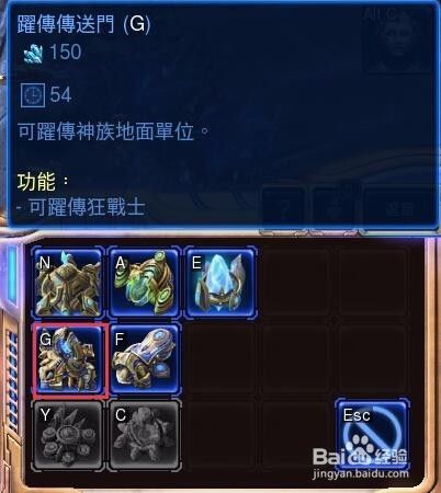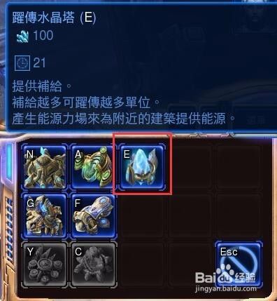 下面选中一个探测机开始建造兵营“跃传传送门”,快捷键BG,神族的兵种相当于都是传送过来的,所以出兵的建筑叫传送门。