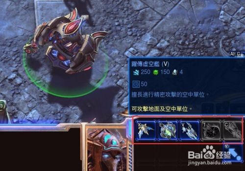 选中探测机,点击VS建造星际之门,用来生产空中单位,比如航空母舰。
