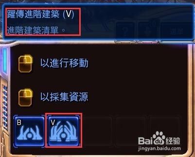下面我们开始建造进阶建筑,我们选中一个探测机可以看到进阶建筑清单V。