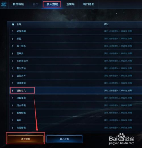 首先打开星际争霸2后点击【多人对战】,然后在里面选中一个地图,点击【建立游戏】。