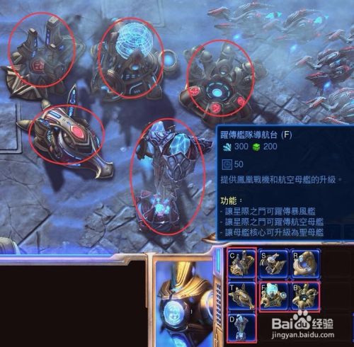 下面选中一个探测机开始建造BF、BY,作用分别为升级地面单位和升级空中单位。