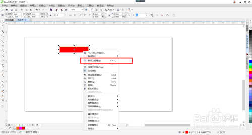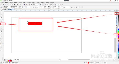 打开cdr软件用矩形工具在页面上绘制一个矩形,鼠标左键点击颜色填充颜色,鼠标右键单击无色去除描边。