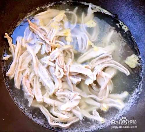 水开后,立即捞出猪肚,保持猪肚的脆嫩口感