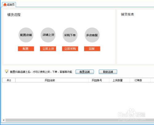 打开工具,我们可以看到配置店铺和店铺上传的,在上传商品前,要先配置下抖音小店。点击“配置店铺”。输入抖音小店的账号、密码。