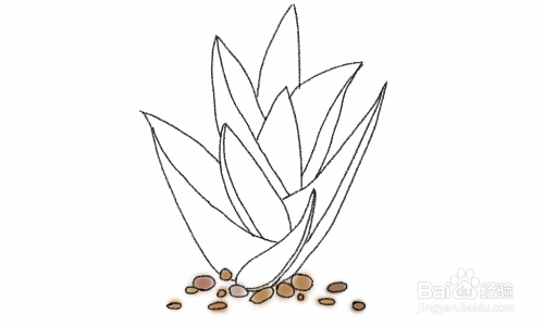 第五步,画完后,用彩色笔将芦荟底下的石头涂上颜色。
