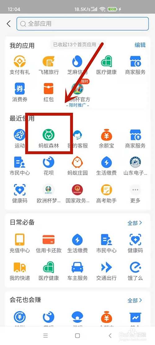 打开支付宝,找到蚂蚁庄园进入。
