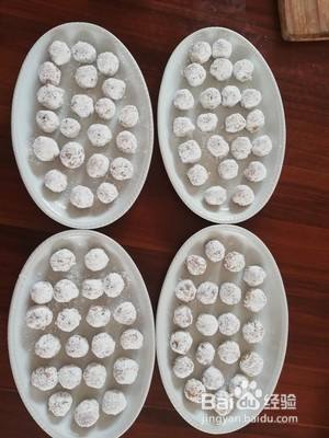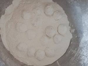 蛋液滚好之后,把丸子放淀粉粘均匀备用。