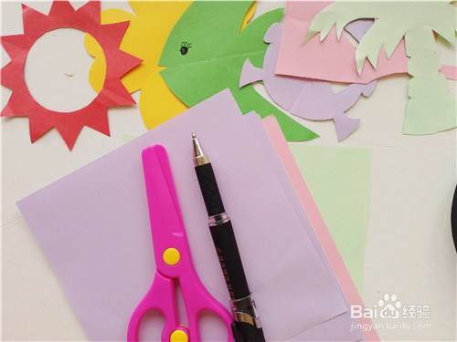 然后减掉多余的彩纸,剪好以后是下面图片一样的。