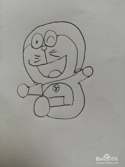 第五步,接着我们继续把可爱的叮当猫的小肚子画出来,画法比较简单。