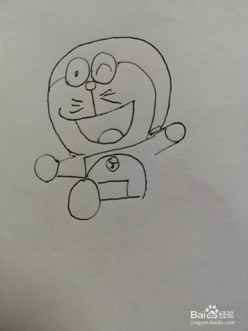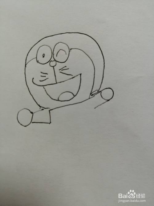 第六步,然后我们画出可爱的叮当猫的一条前腿,注意腿的相对位置。