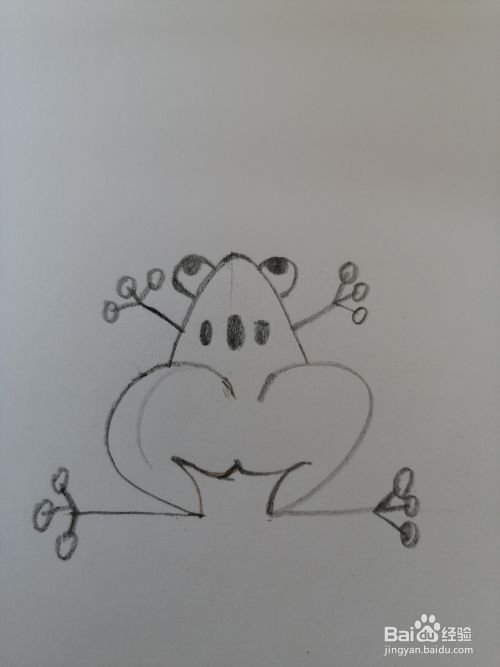 最后一步,是把青蛙的腿描绘出来,在把脚画出来,这样就行了。如果还想要更好,把青蛙涂上颜色也可以。