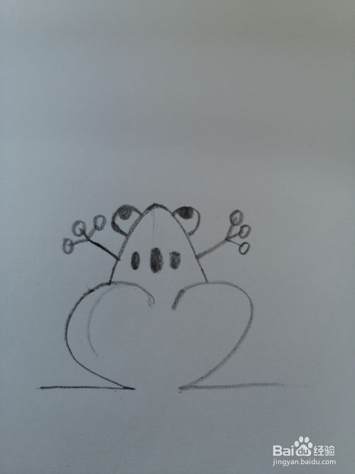 然后在青蛙的身体上画出三个椭圆的原点,表示青蛙的皮肤。
