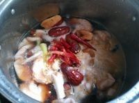 放入所有辅料(盐巴、酱油、八角、大葱段、干辣椒、大枣、红糖、花椒、十三香)煮开以后再煮四十分钟。
