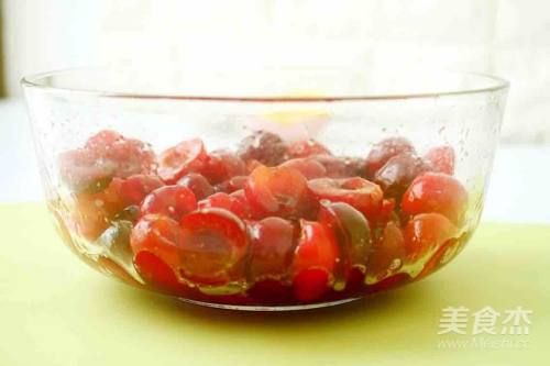 3腌制1个小时左右至樱桃出汁。