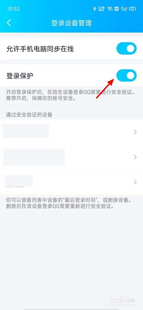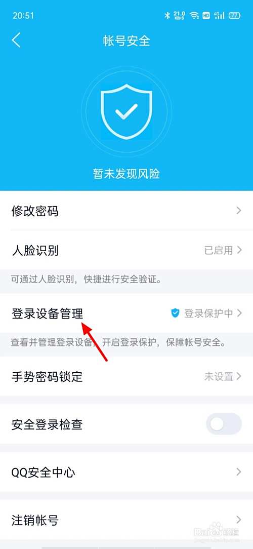 在帐号安全页面,点击登录设备管理。