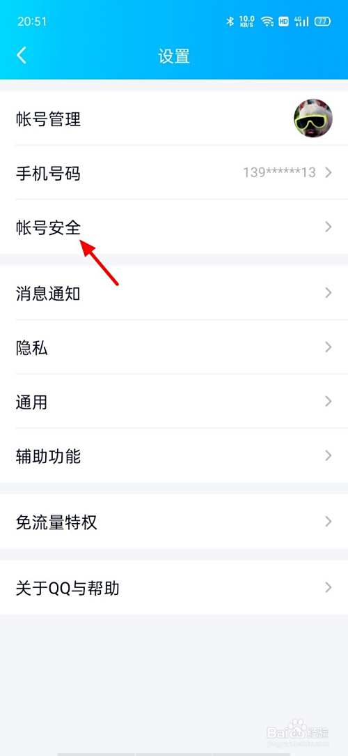 在设置页面,点击帐号安全。