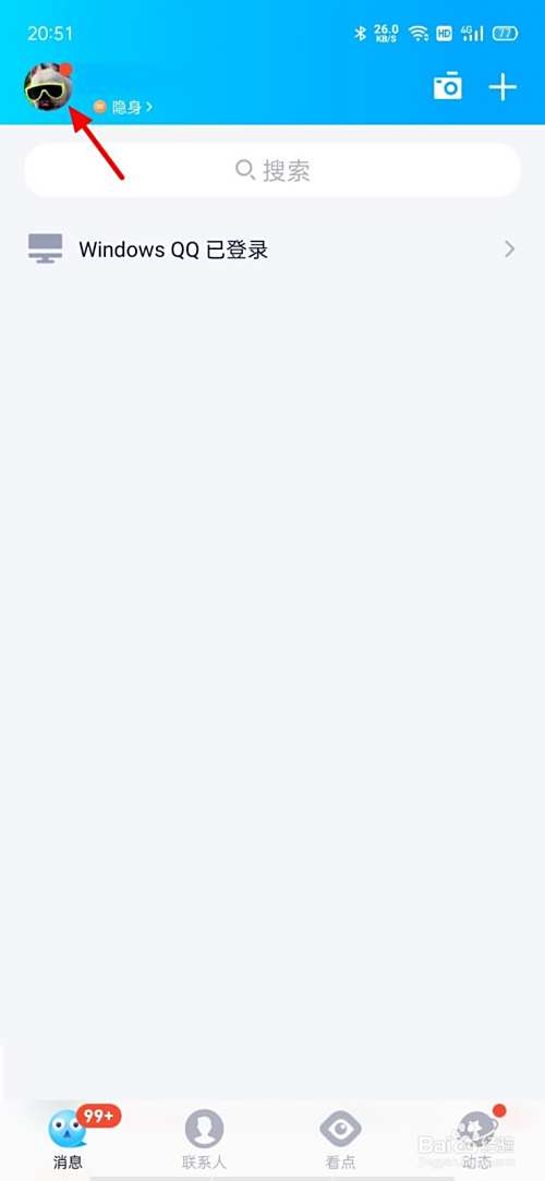 在QQ首页,点击头像。