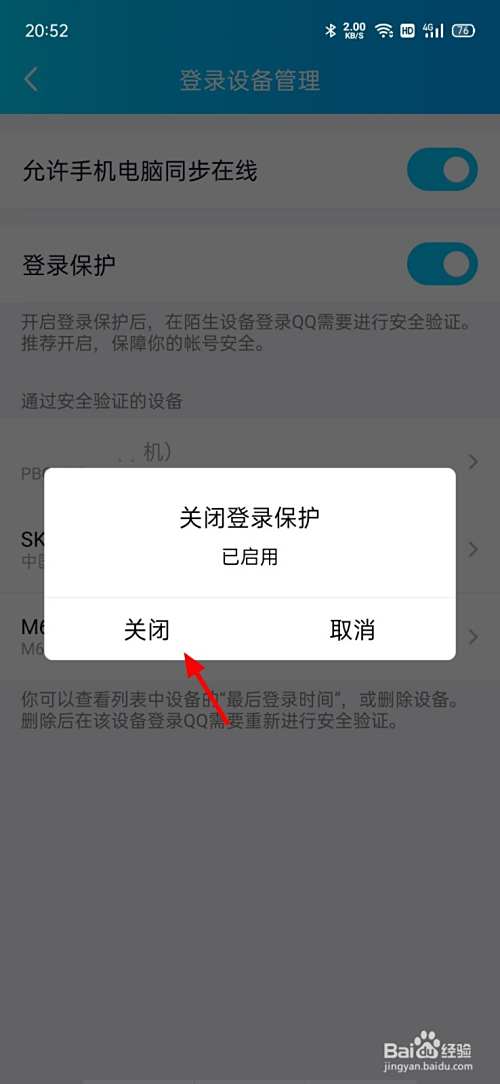 点击关闭,这样登录保护就关闭成功。