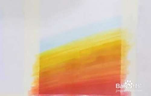 拿出马克笔的白色,浅蓝色,黄色,橙色和红色分别晕染在纸上如下图所示