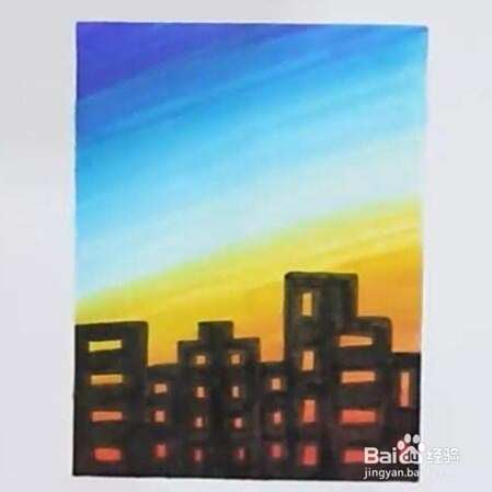 接着在这些颜色的上方涂抹上深蓝色,浅蓝色与它接在一起