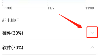 在电池页面,耗电排行下,点击硬件下拉按钮。