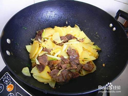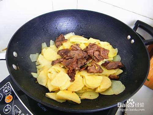 干煸的方法要把土豆片切得薄一些,要用水浸泡过后在炒,用不粘大勺,不容易粘锅。油大一些比较好吃。如果不是不粘大勺会容易粘锅,可以适量加点水,不过这样干炒熟的更好吃些。 牛肉有时间可以用压力锅煮压半小时煮好,汤用来做面,牛肉冷冻或冷藏保存,吃的时候很方便。