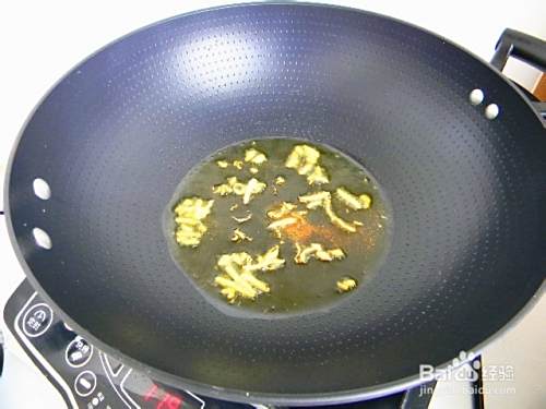 炒锅热油,油比正常炒菜多放一点。炸香姜丝和胡椒粉
