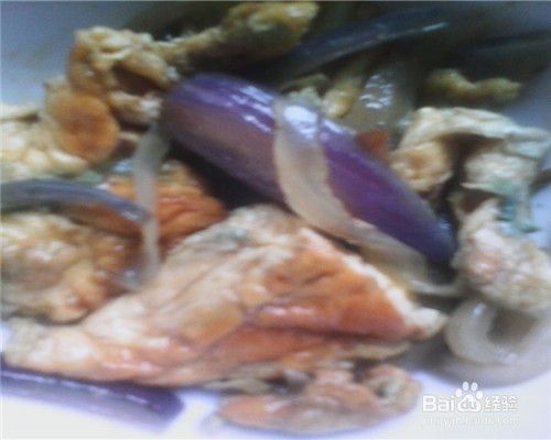 把鸡蛋和紫皮洋葱丝一起翻炒。
