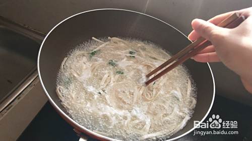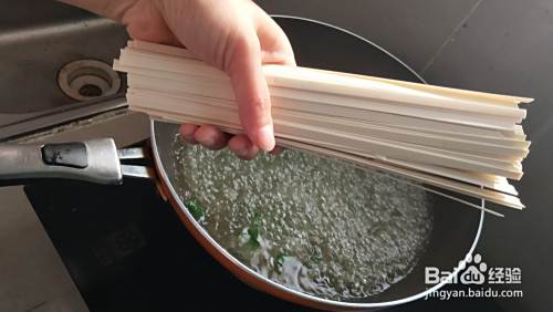 如图,待挂面熟透后放入适量鸡精即可关火。