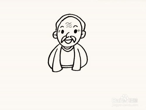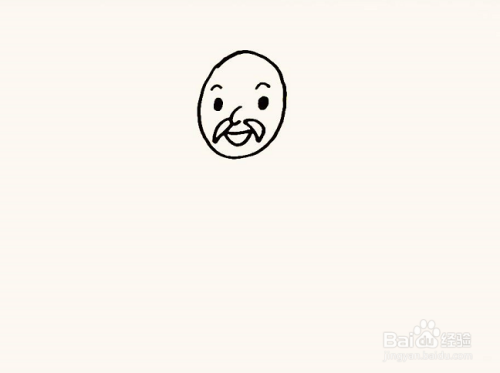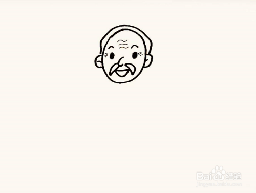 再画出爷爷的眉毛、眼睛、鼻子和嘴巴,在嘴巴两侧再画出爷爷的两撇胡子。