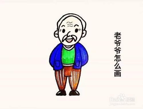 再向下画出爷爷上半身的大致轮廓,注意双手是背在身后的,正面只露出手臂。