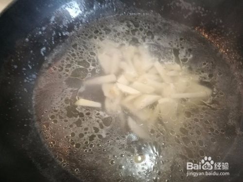 大火烧开,放入少许的盐,(之前猪肝里面放过盐了,现在只需放少量的)