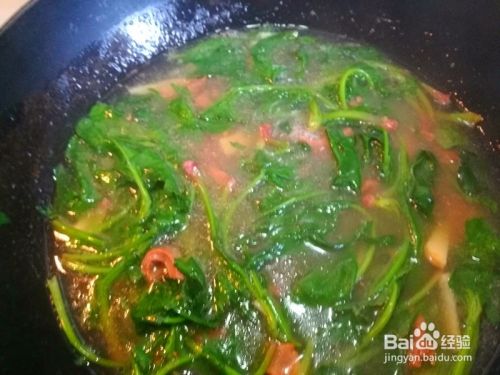 菠菜很容易熟,所以立即要放入猪肝进去。