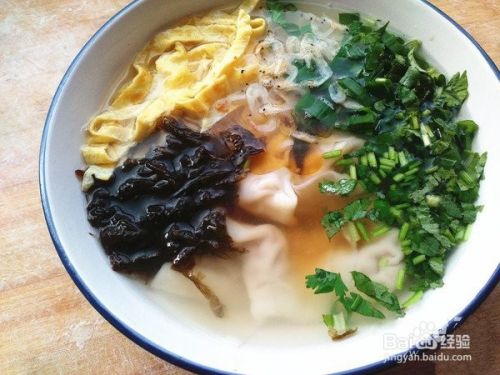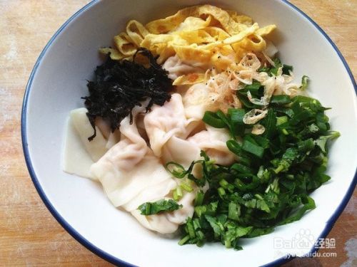 9.馄饨捞入碗内,加蛋皮,紫菜,虾皮,香菜碎和葱碎