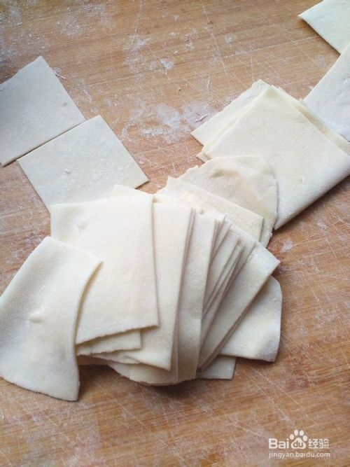5.200克面粉加100克水,活成柔软面团,擀成片后,切成馄饨皮,尽量薄一些