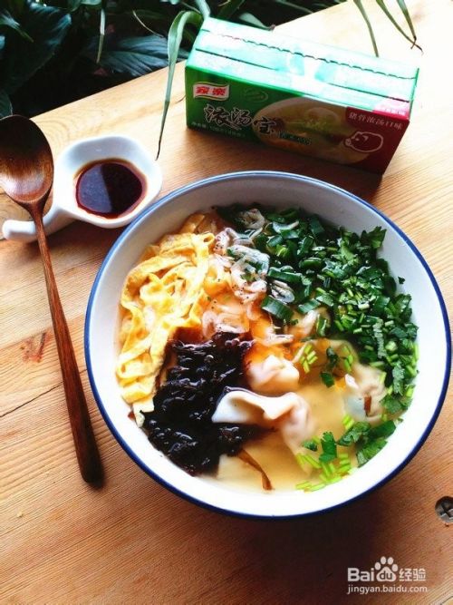 10.加入煮馄饨的汤,再加少许盐,麻油调味,根据个人口味加醋